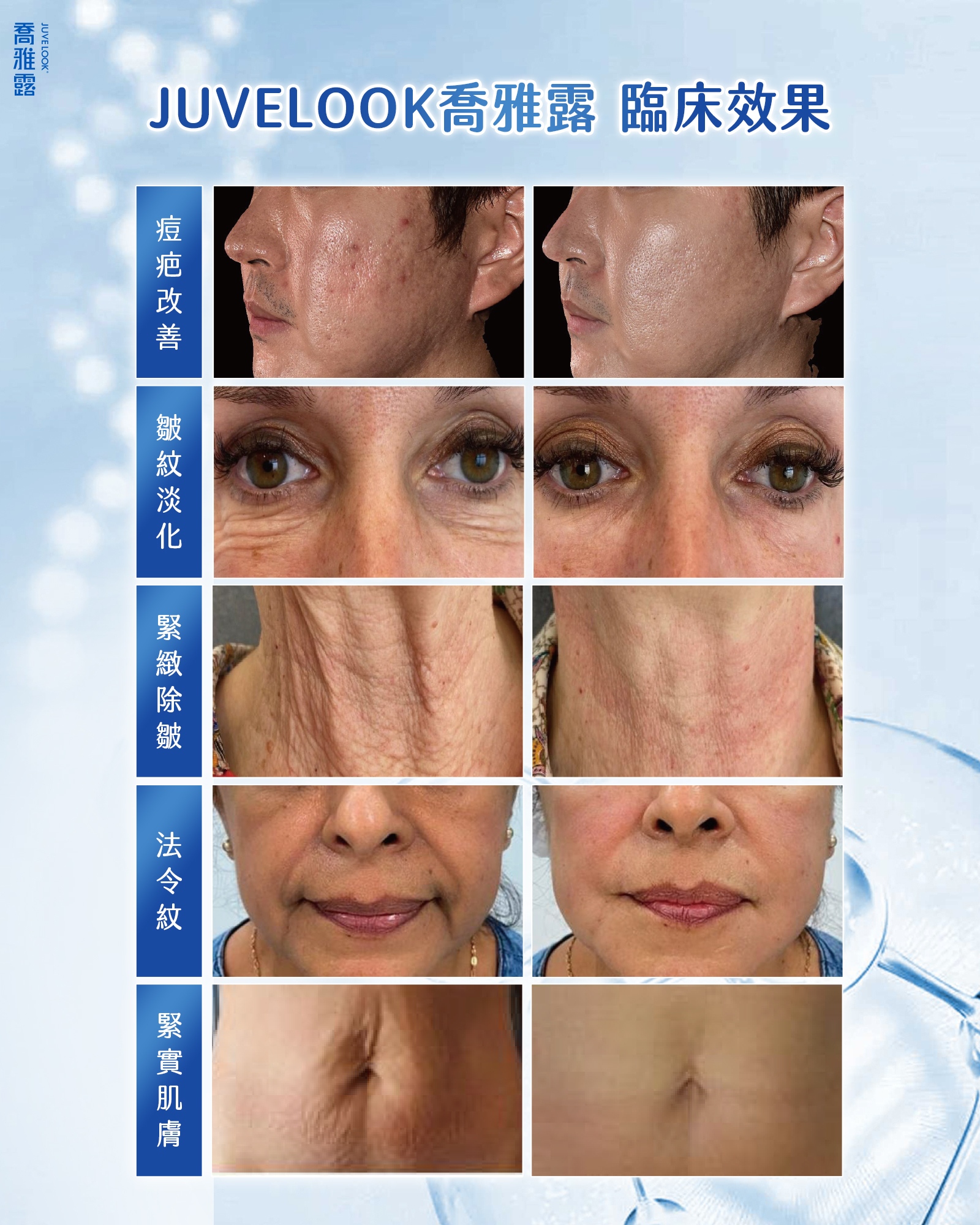 - 喬雅露效果:漸進式膠原蛋白增生效果,讓你的皮膚Q彈緊緻,細紋也掰掰!