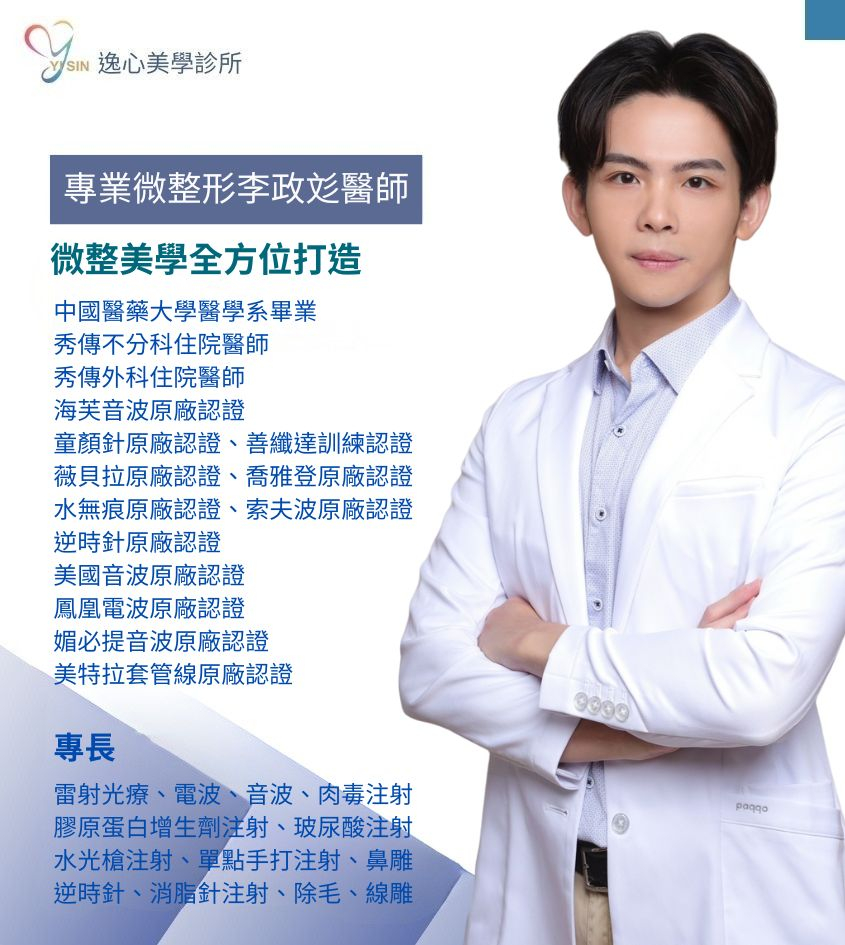 李政彣醫師以專業醫學背景與細膩美感為核心,搭配親切溫和的互動,讓每一次走進診間都能感受到安心與被理解。他始終耐心傾聽、細心溝通,陪伴每一位來診者探索最適合自己的美。
